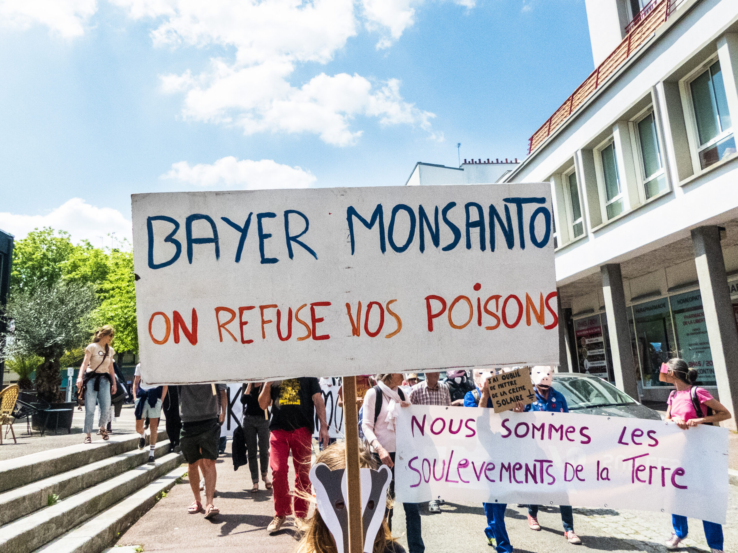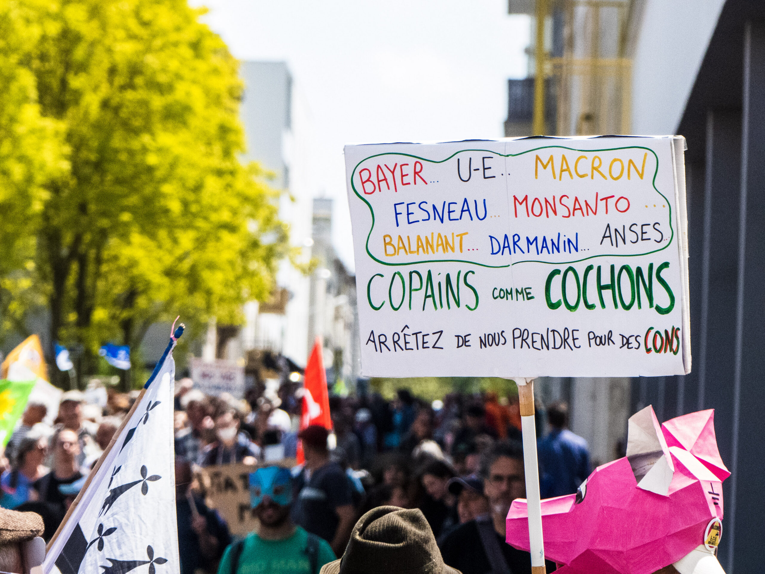 Plus de 500 personnes ont manifesté le 20 mai 2023 afin d’alerter contre l’usage des pesticides dans l’industrie agroalimentaire.
