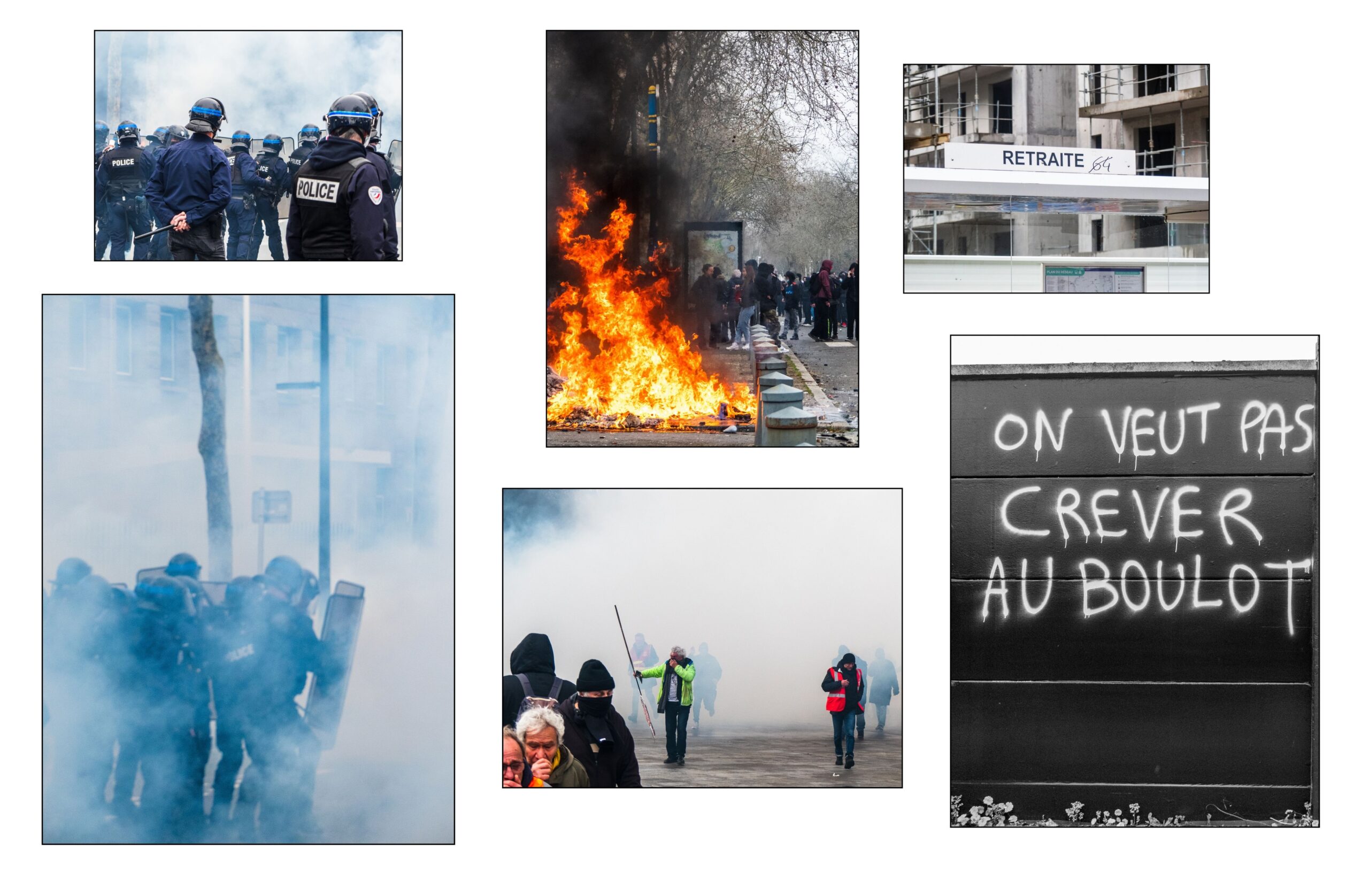 Dans ce travail de trois mois, j’ai alterné les couvertures de manifestations contre la réforme des retraites et les cours. Ainsi, j’ai souhaité, pour cette exposition, parler de la jeunesse et de sa détermination.